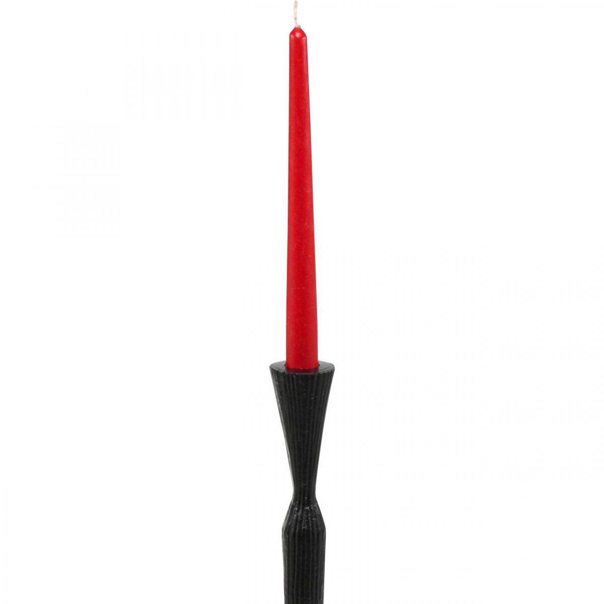 A magas gyertyatartó szabálytalan hosszanti barázdái növényi formákra emlékeztetnek, ugyanakkor dekoratívak és egyszerűek. A fekete színű gyertyatartó tartója minden szabványos gyertyához és kúpos gyertyához alkalmas.