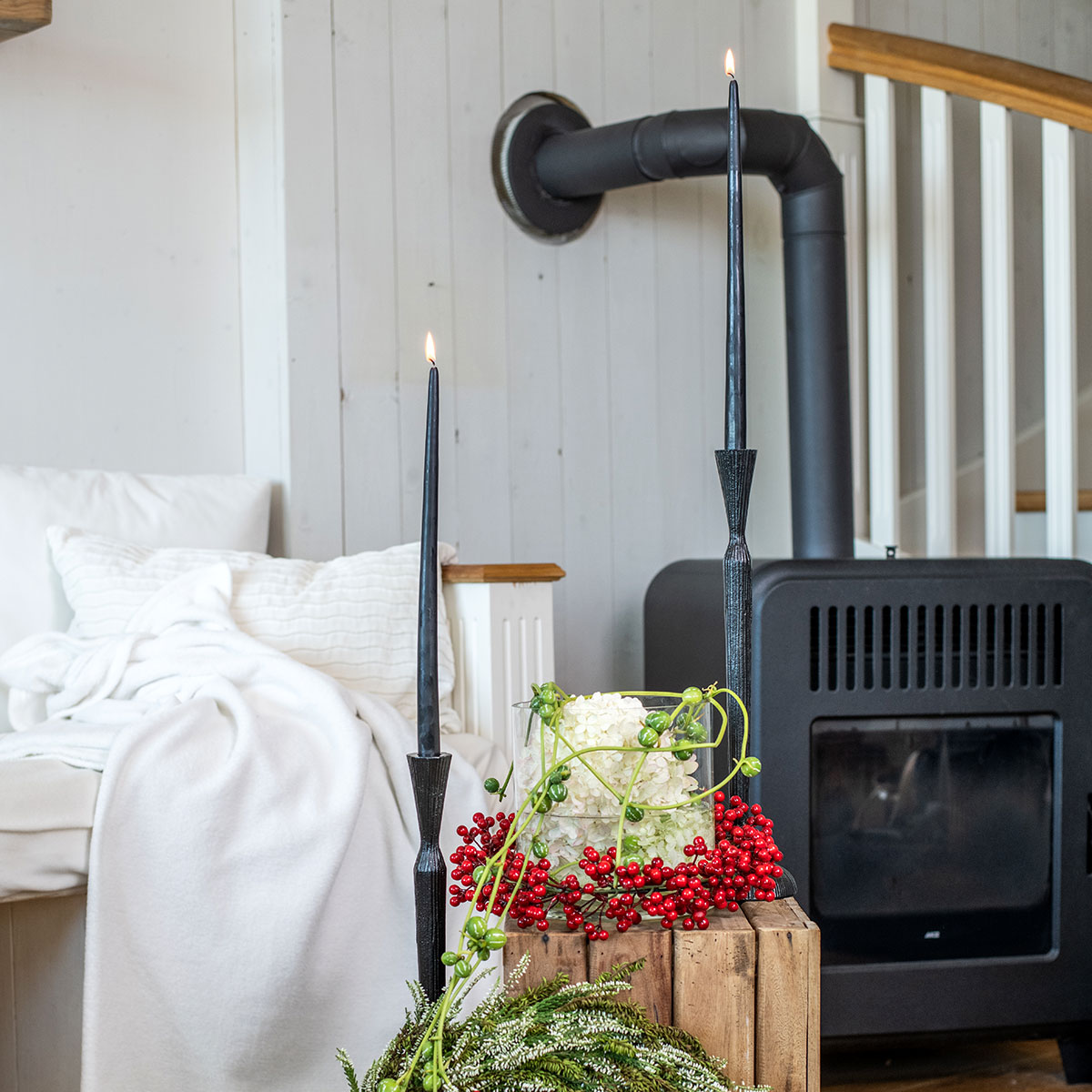 A fekete és arany színű gyertya díszítéshez kombinálja a gyertyatartót szezonális kiegészítőkkel, például karácsonyi díszekkel. Egy arany gyertya vagy egy nemes fémes tónusú gyertya nem hiányozhat!