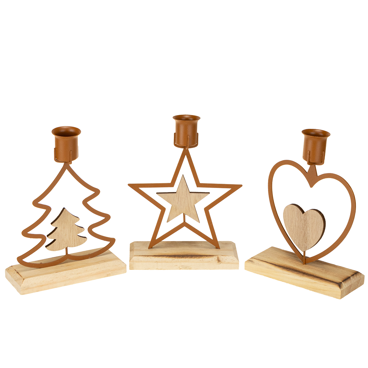 Gyertyatartó gyertyák csillagszív fenyő barna H16,5cm válogatott 3db