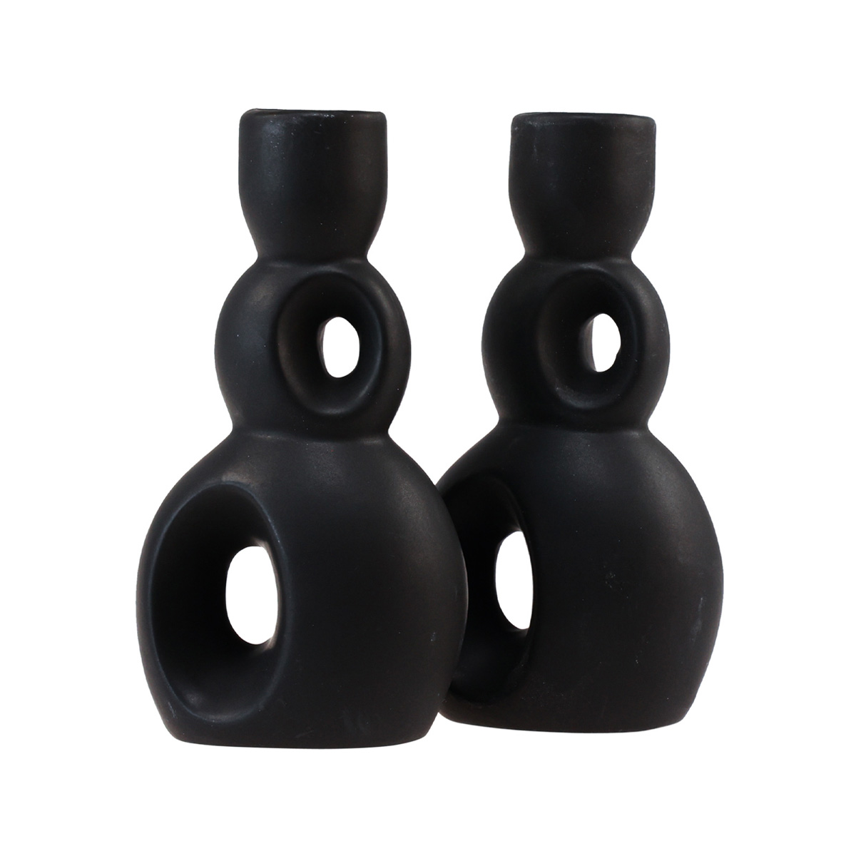 Gyertyatartó Kerámia Gyertyatartó Fekete H13cm 2 Db