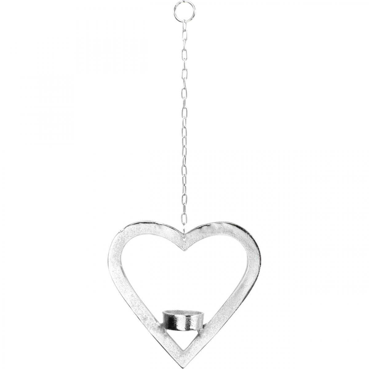 Gyertyatartó szívben, akasztható gyertya dekoráció, esküvő, Adventi dekoráció fém ezüstből H17,5cm