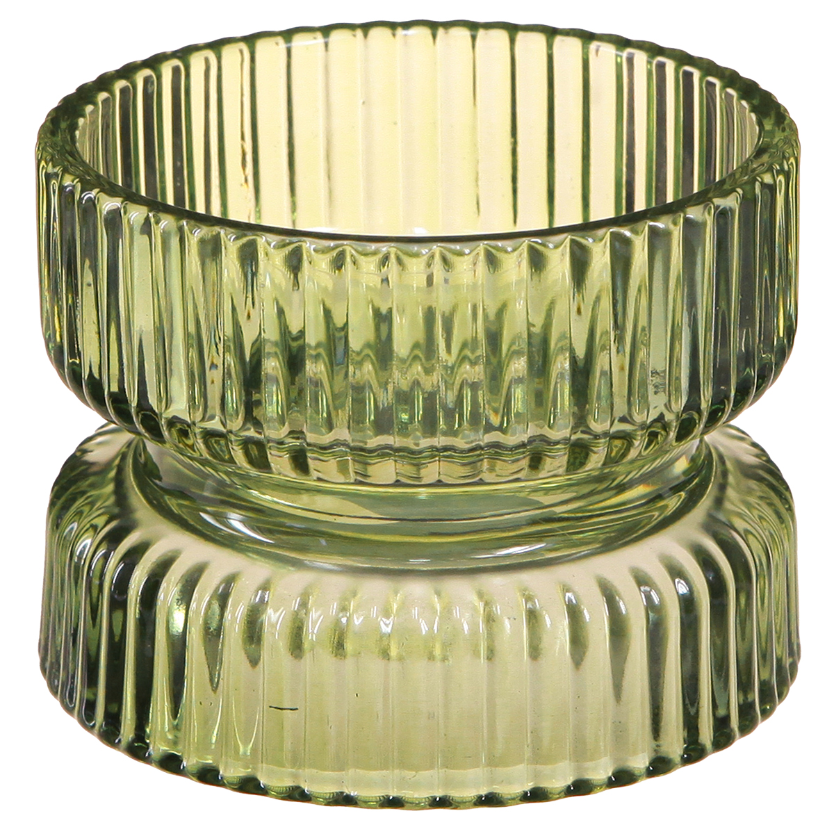 Gyertyatartó üveg díszbordás zöld Ø9cm H7cm 4 db