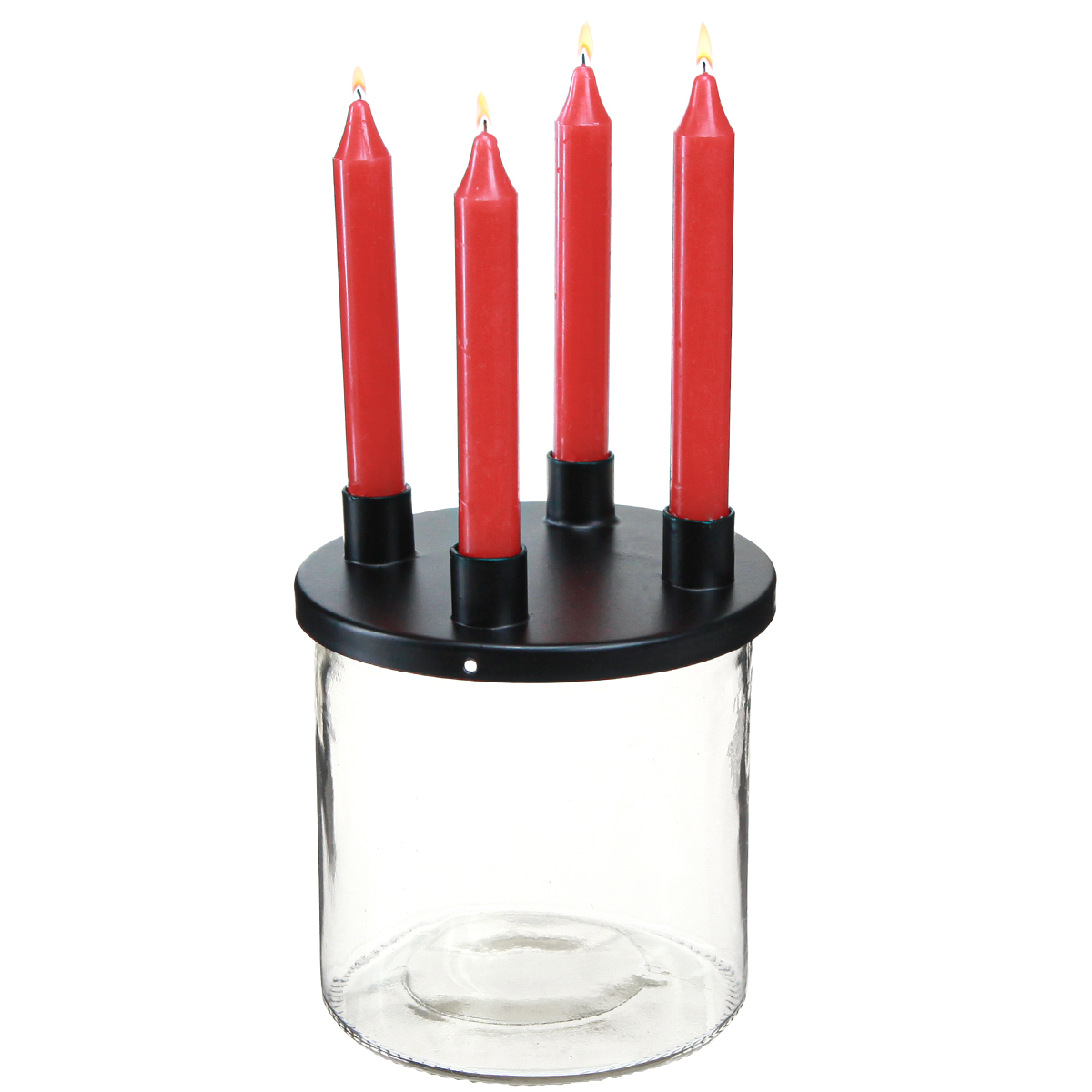 A fém fedélben négy tartó található kisméretű gyertyák vagy piramis gyertyák számára, amelyek átmérője körülbelül 1,3 centiméter. Míg a felső része gyertyatartóként szolgál, addig a díszpohár díszítőelemekkel megtölthető és sokféleképpen díszíthető.