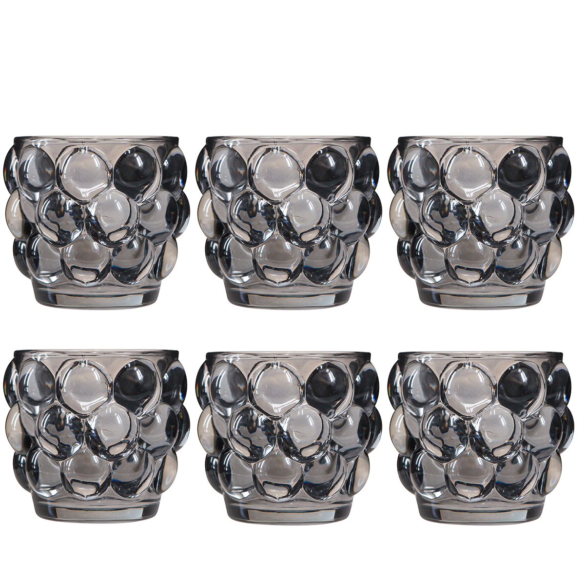 Gyertyatartó üveg teamécses tartó szürke Ø7cm H7cm 6 db