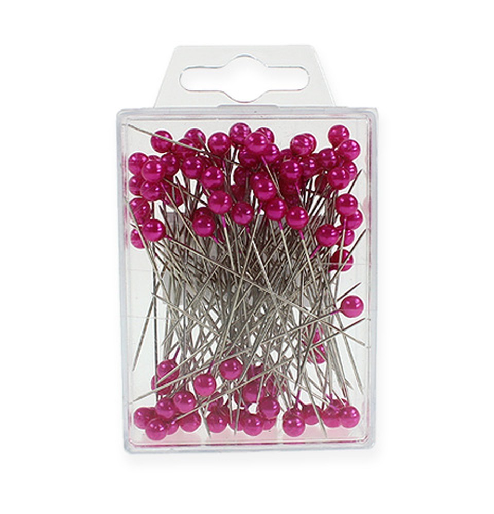 A gyöngyfejű tűket rózsaszín és ezüst színben, műanyag dobozban kapod, 100 darabos készletben. Míg a gyöngy átmérője körülbelül 6 milliméter, a tűk körülbelül 65 milliméter hosszúak.
