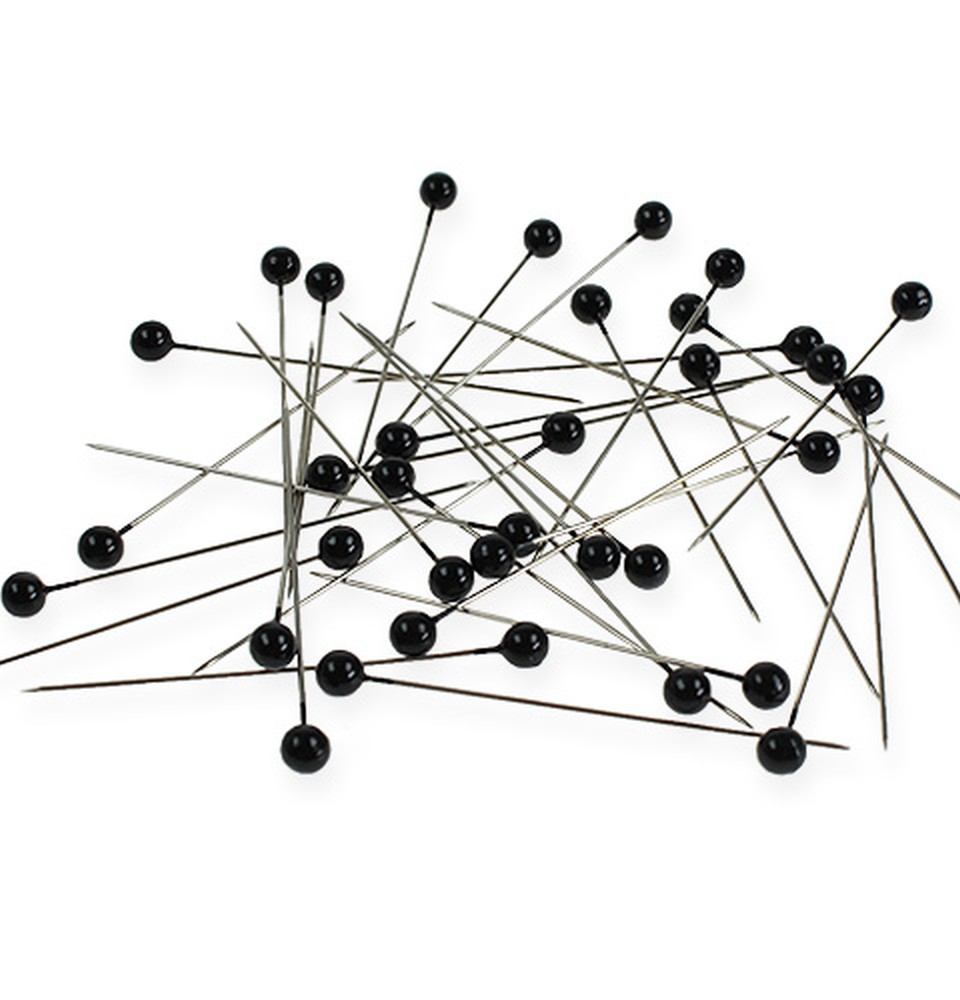 A fekete színű gyöngyfejű tűket praktikus akasztós dobozban szállítjuk, egyenként 100 példányban. Hosszúságuk körülbelül 65 milliméter; a gyöngy átmérője körülbelül 6 milliméter.