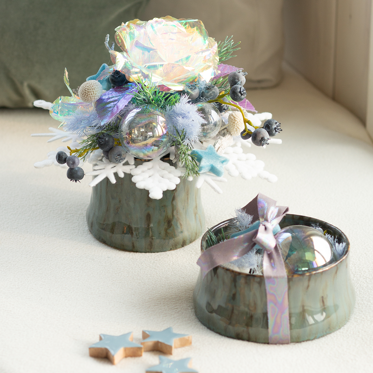 Az „Üveggömb gyöngyházhatású és irizáló csillogással” sokkal több, mint pusztán szép látvány. Ezek a gömbök a legkiválóbb kézműves munka példái. 6 cm átmérőjükkel ideálisak bármilyen ágon való kiállításhoz. Az irizáló színváltozások lélegzetelállító fény-árnyék játékot kínálnak, hangulatos fénnyel fürdetve bármilyen szobát. Egyszerűen fantasztikusak ahhoz, hogy személyre szabott hatást kölcsönözzön karácsonyfájának, vagy izgalmas kontrasztot teremtsen természetesebb elemekkel, például fenyőtobozokkal és fa díszekkel.