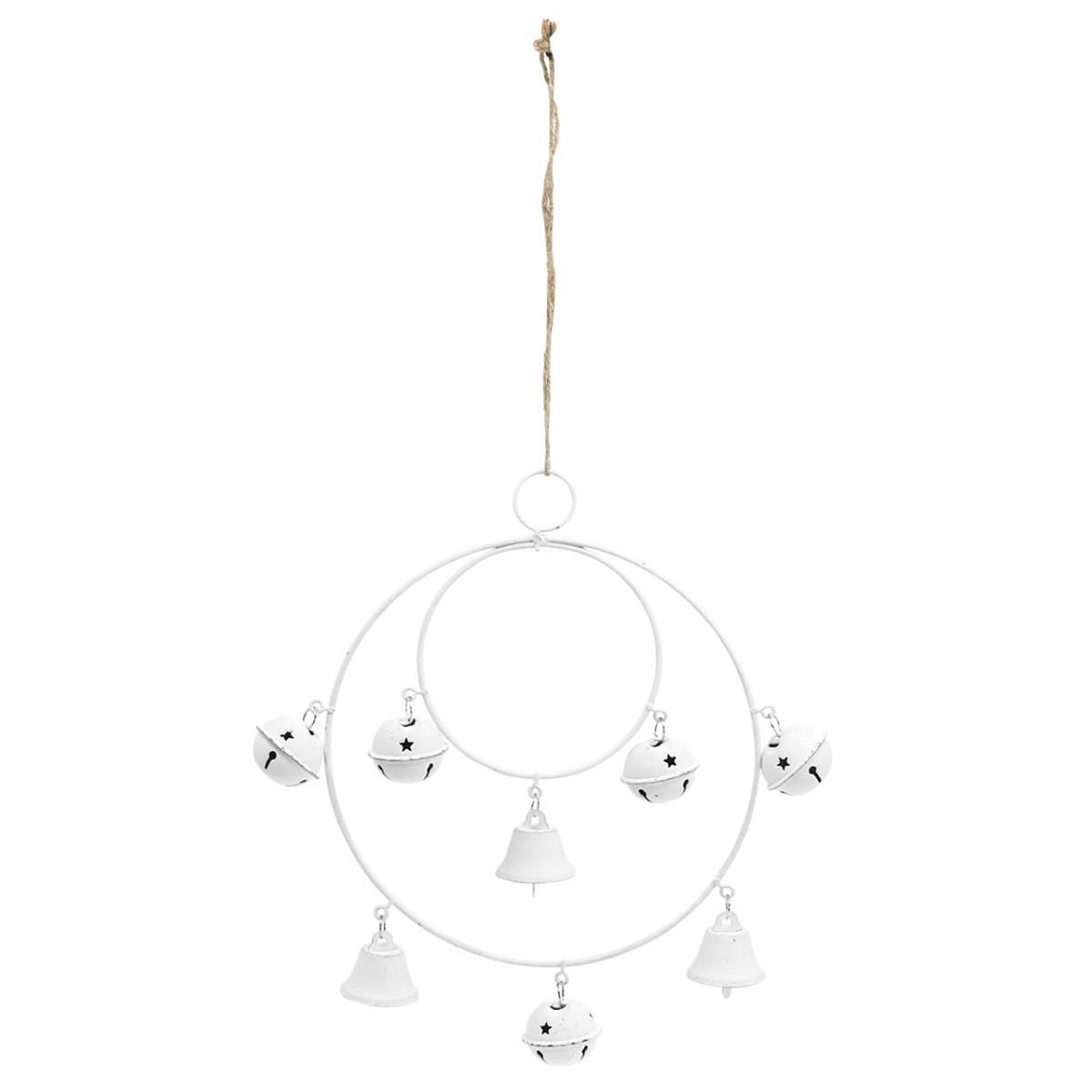 Gyűrű harangokkal, adventi dekoráció, gyűrűs koszorú, fém dekoráció akasztáshoz Fehér H22,5cm Sz21,5cm