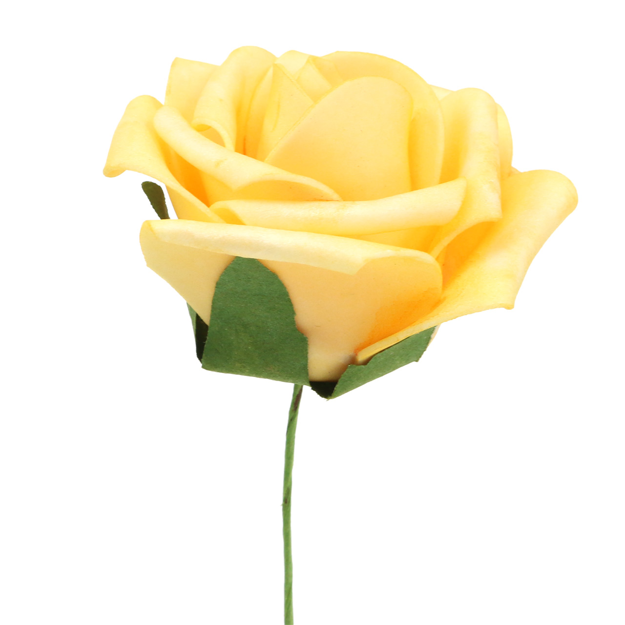 A sárga hab rózsát szettben kínáljuk, összesen 18 darabból. A fej átmérője körülbelül 7,5 cm, mérete körülbelül 5 cm. A vezeték hossza körülbelül 24 centiméter.
