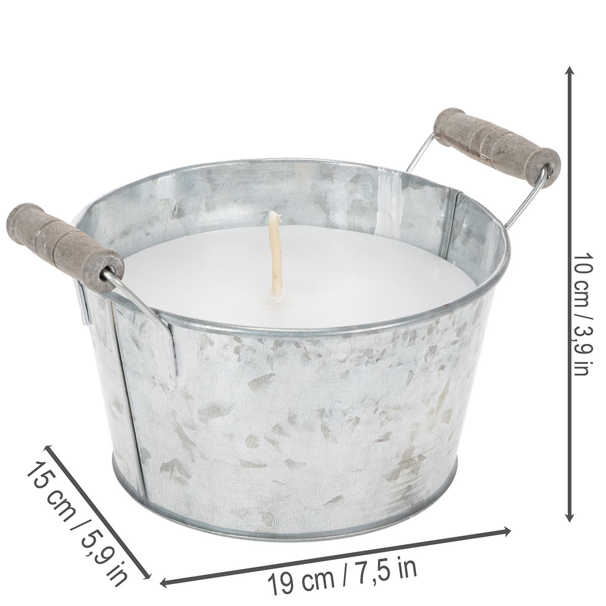 Hangulatos gyertya cinkvödörben teraszra és erkélyre 15 cm