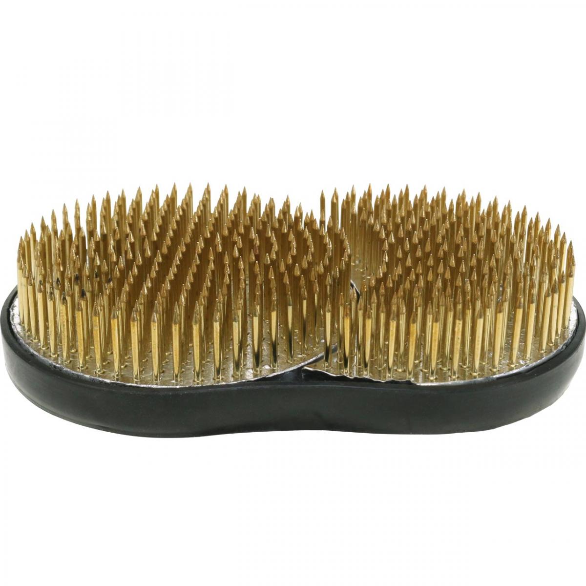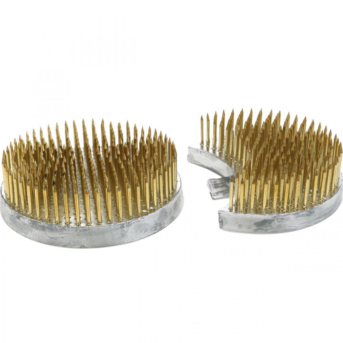 Hozd be a japán életmódot négy faladba a dekoratív sündisznóval! Összesen 454 sárgaréz fémcsap van az ezüst tüskeágyhoz rögzítve. Az alján egy kivehető gumibetét is található. Használhatja együtt a fém klip tartót, vagy leveheti a Kenzan kerek formában és félholdként külön-külön is, hogy megvalósítsa dekoratív ötleteit.