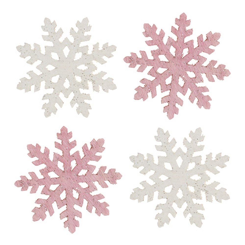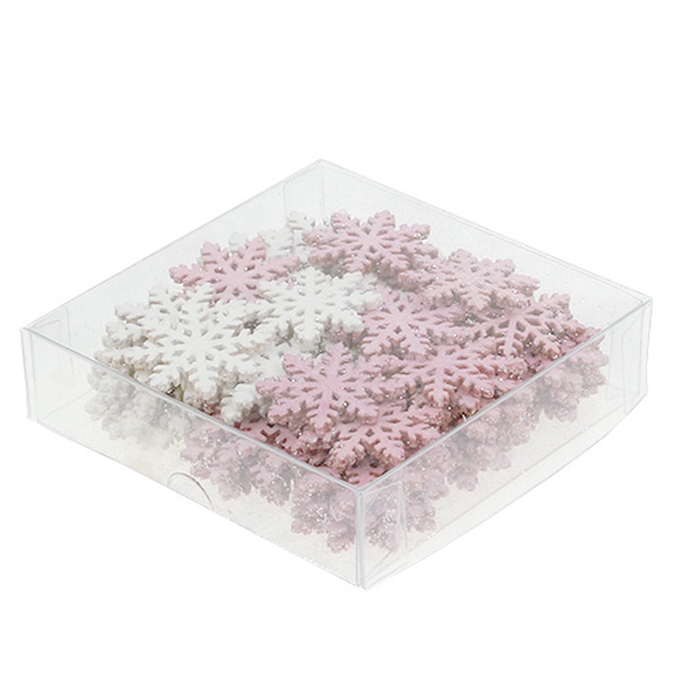 Termék neve: Hópehely 4cm rózsaszín/fehér csillámmal 72 db