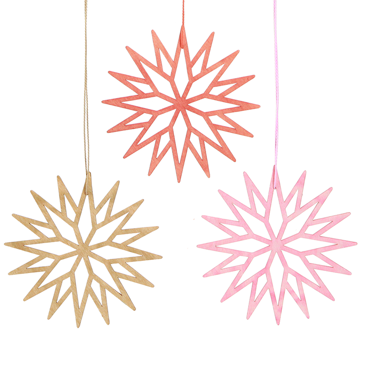 Tapasztalja meg a karácsony varázsát a narancssárga, rózsaszín és természetes hópehely fadíszekkel. Ezek a precízen vágott fa medálok melegséget és vidámságot kölcsönöznek bármilyen karácsonyi dekorációnak, és ünnepi menedékké varázsolják szobáját. Tökéletes mindenkinek, aki különleges és természetes módon szeretné elkészíteni karácsonyi díszeit.