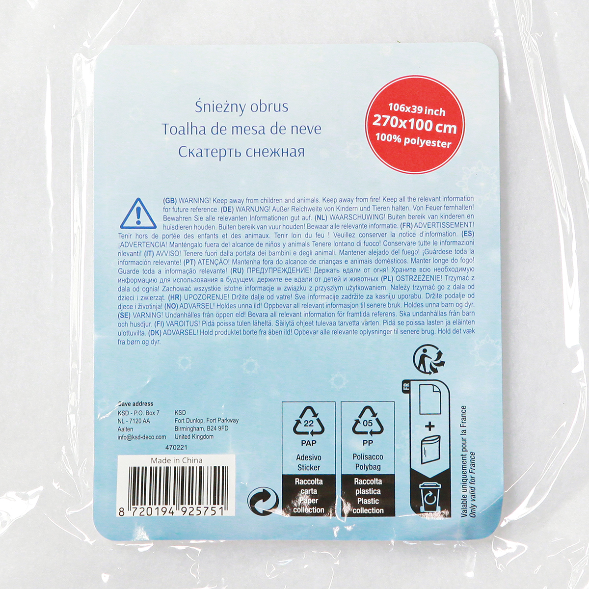Ez a hószőnyeg ideális karácsonyi vásárokhoz, kreatív kirakattervezéshez vagy stílusos téli kiegészítőként az otthoni asztalhoz. A klasszikus dizájnnak köszönhetően az abrosz könnyedén beilleszthető különféle életstílusokba, mint például a Scandi vagy a vidéki házba, és minden helyiségbe téli varázst és ünnepi hangulatot kölcsönöz.