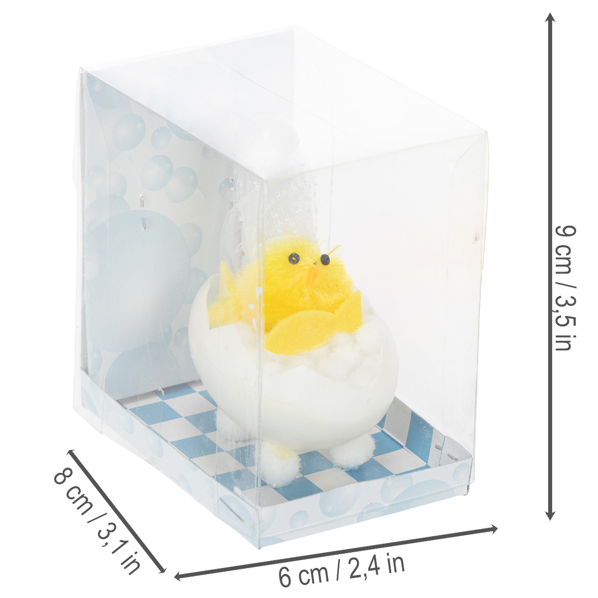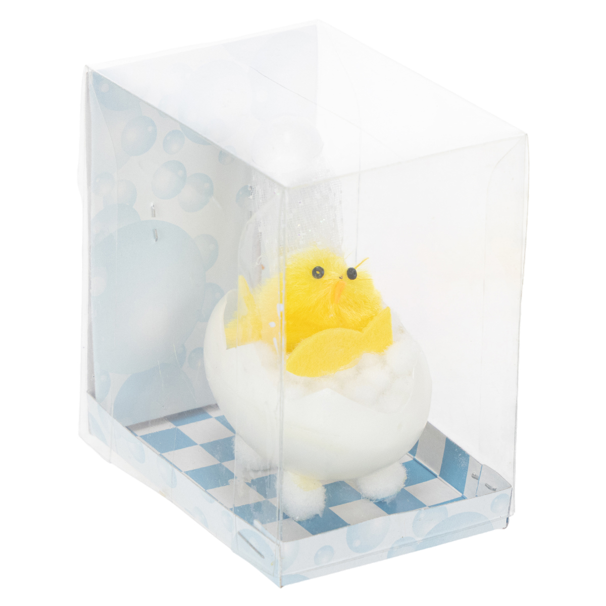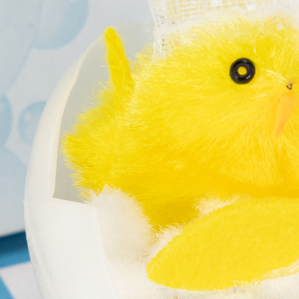Húsvéti csibe dekoráció, zsenília csibe a kádban, sárga, 9cm