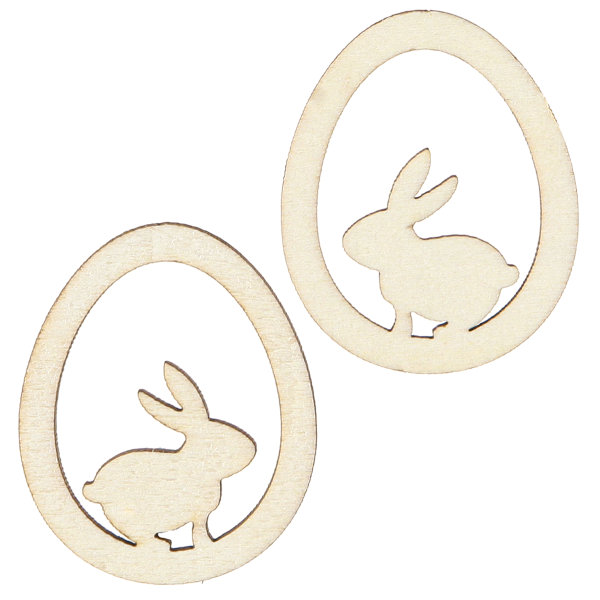 Húsvéti díszek kézművesekhez, nyuszi tojás, natúr fa, 4 cm, 72 db