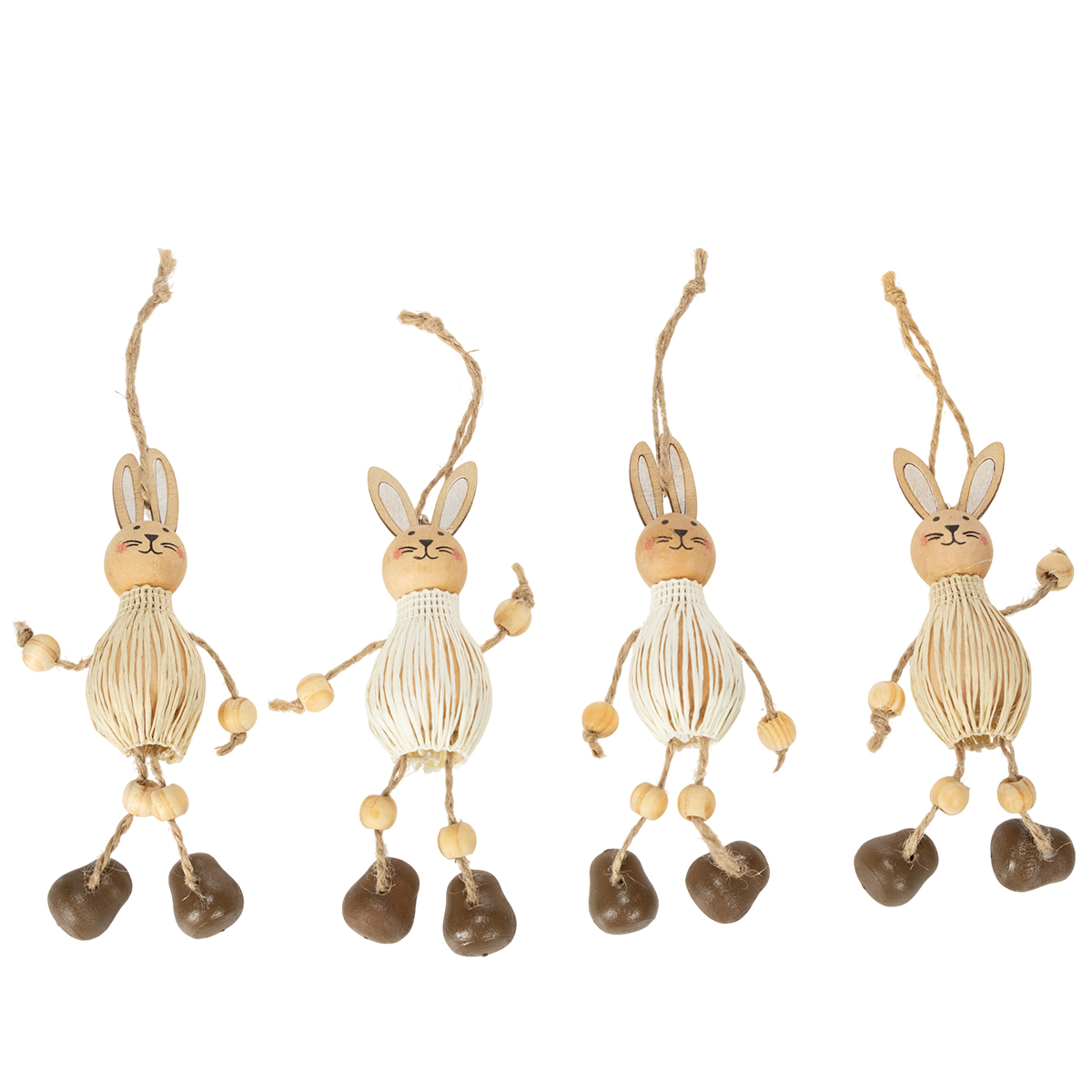 Ezek a húsvéti nyuszik természetes fa megjelenésükkel és kétszínű dizájnjukkal időtlen és bájos megjelenéssel rendelkeznek. Fehér és natúr fa változatban tökéletesen illenek a vidéki stílusú vagy vintage stílusú húsvéti dekorációkhoz. Különösen szép a részletes kidolgozásuk – mozgatható lábaikkal és vidám arcukkal ezek a díszek játékos könnyedséget kölcsönöznek a dekorációnak.