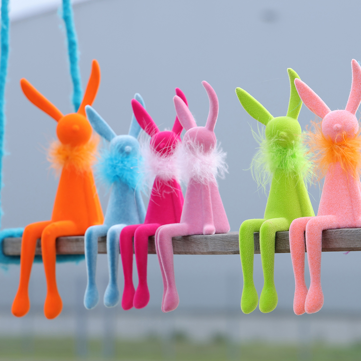 Húsvéti nyuszi dekorációink a stílus és a funkcionalitás sikeres kombinációjával lenyűgözőek. Különleges, polcra illő formájuk lehetővé teszi, hogy tökéletesen megállják a helyüket bármilyen vízszintes felület szélén, látszólag lazán lógó lábaikkal, minimális helyet foglalva. Különösen kreatívan mutatnak egy nappali tálalószekrényen, egy polcon, vagy akár egy tavaszi témájú előszobában. A tollboa elegáns, mégis játékosan könnyed megjelenést kölcsönöz nekik, amely egyszerűen megmelengeti a szívet.