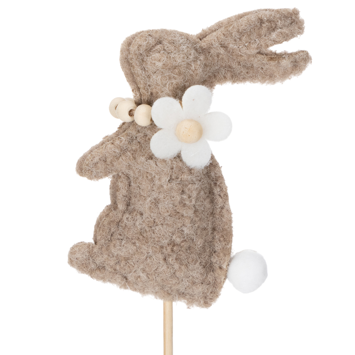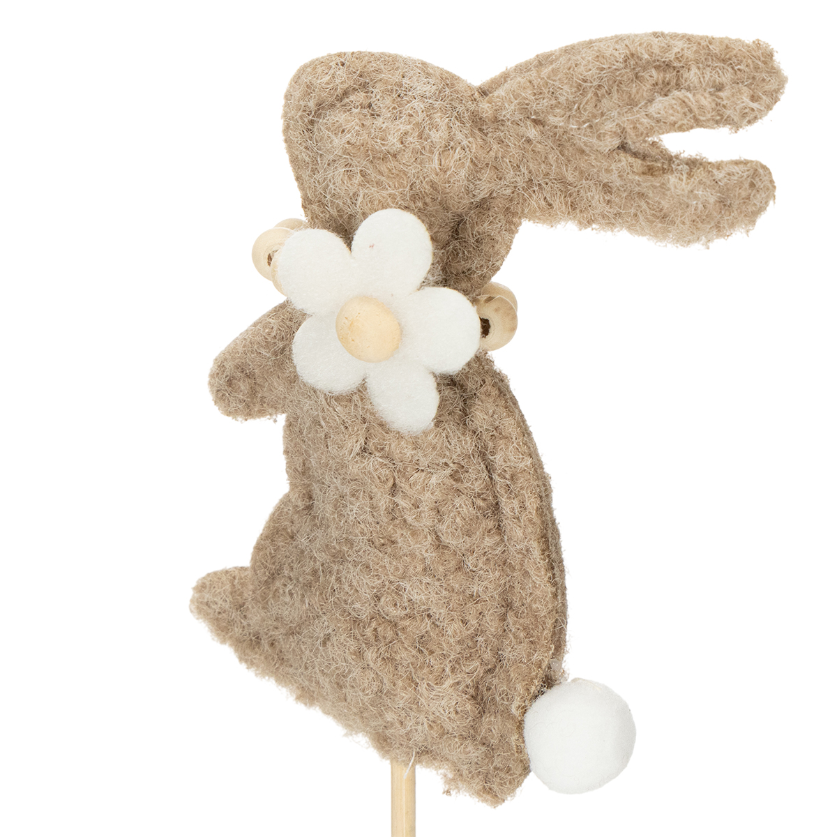 Ez a húsvéti nyuszi dekoráció igazi fénypont a kreatív dekoráció szerelmeseinek. A figurák kiváló minőségű, meleg barna árnyalatú filcből készültek, amely természetességet és otthonosságot sugároz. A bájos részletek, mint például a finom virág és a kis pihés farok, különleges vonzerőt kölcsönöznek a nyusziknak. A masszív pálca megkönnyíti a nyuszik elrendezését vázákban, cserepekben vagy virágdíszekben. Azok, akik a minimalista vagy skandináv dizájnt kedvelik, imádni fogják ezeknek a figuráknak a visszafogott, mégis kifejező stílusát.