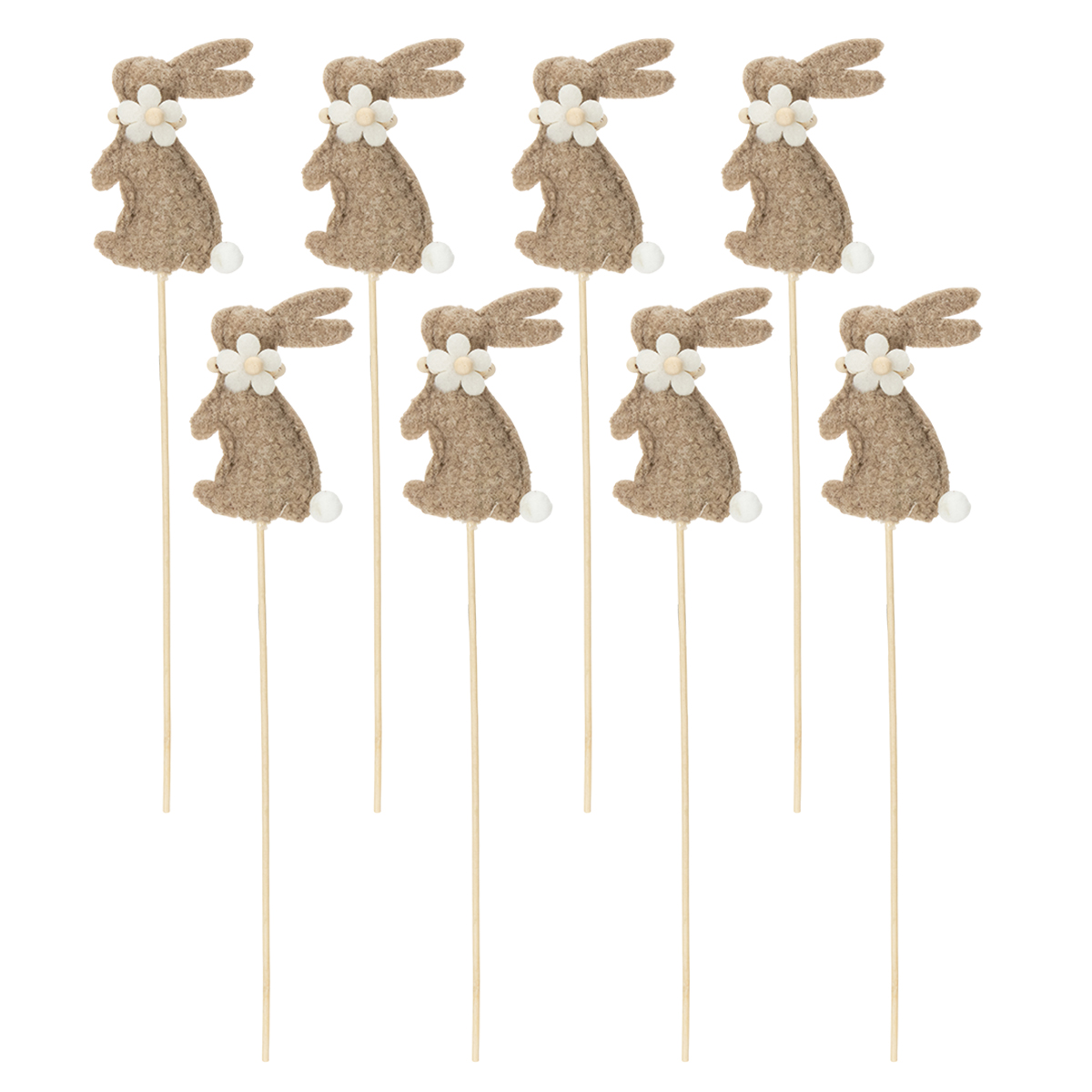 Ezek a 42 cm magas díszes karók különösen élénken mutatnak tavaszi virágkompozíciókba illesztve. Kombinálhatod őket friss virágokkal, vagy elhelyezheted egy fonott kosárban? A nyuszik ideálisak beltéri és kültéri használatra egyaránt. A húsvéti reggeli asztaldíszeitől a kerti partik díszítéséig ezek a figurák ugyanolyan sokoldalúak, mint maga az évszak. A csomagban található nyolc darabbal rengeteg helyed lesz kreatív ötleteid kibontakoztatására.