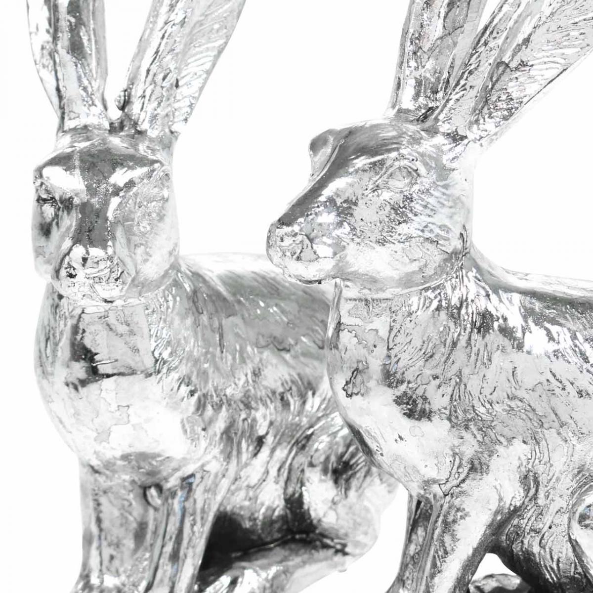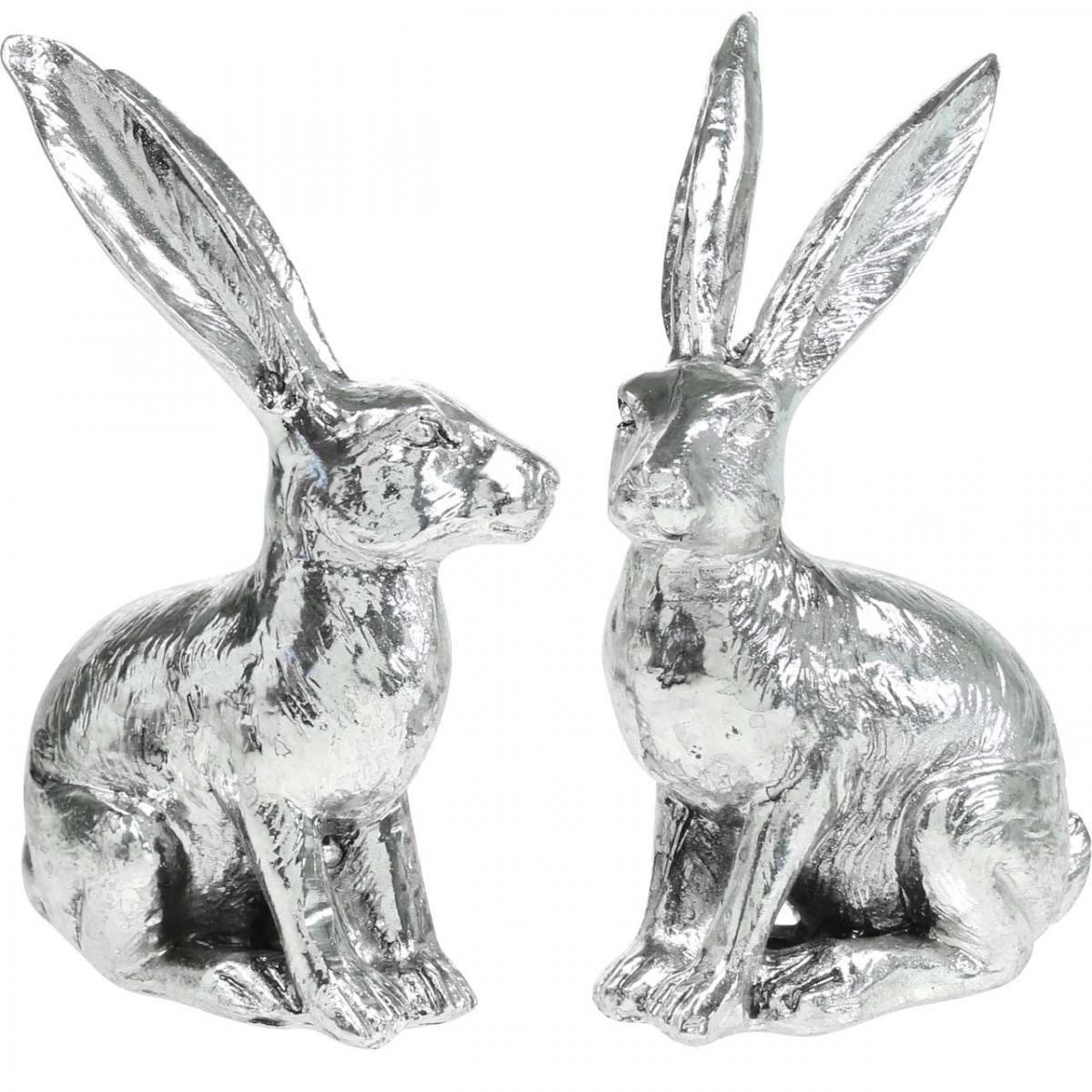 Húsvéti Nyuszi Ülő Ezüst Nyúl Díszfigura Húsvéti 13cm 2db