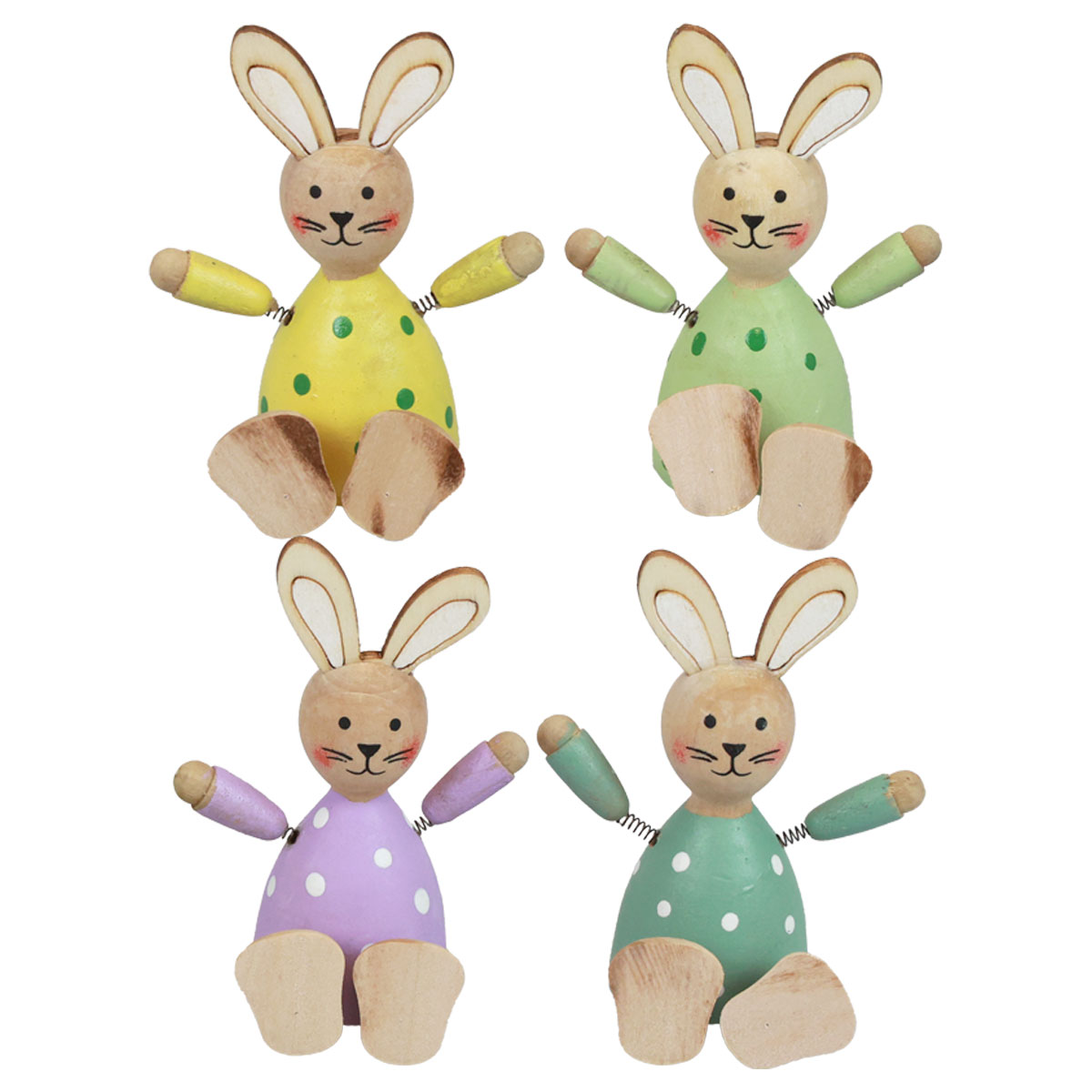 Húsvéti nyuszik színes fa nyuszik pontozott asztali dekoráció H8cm 4 db