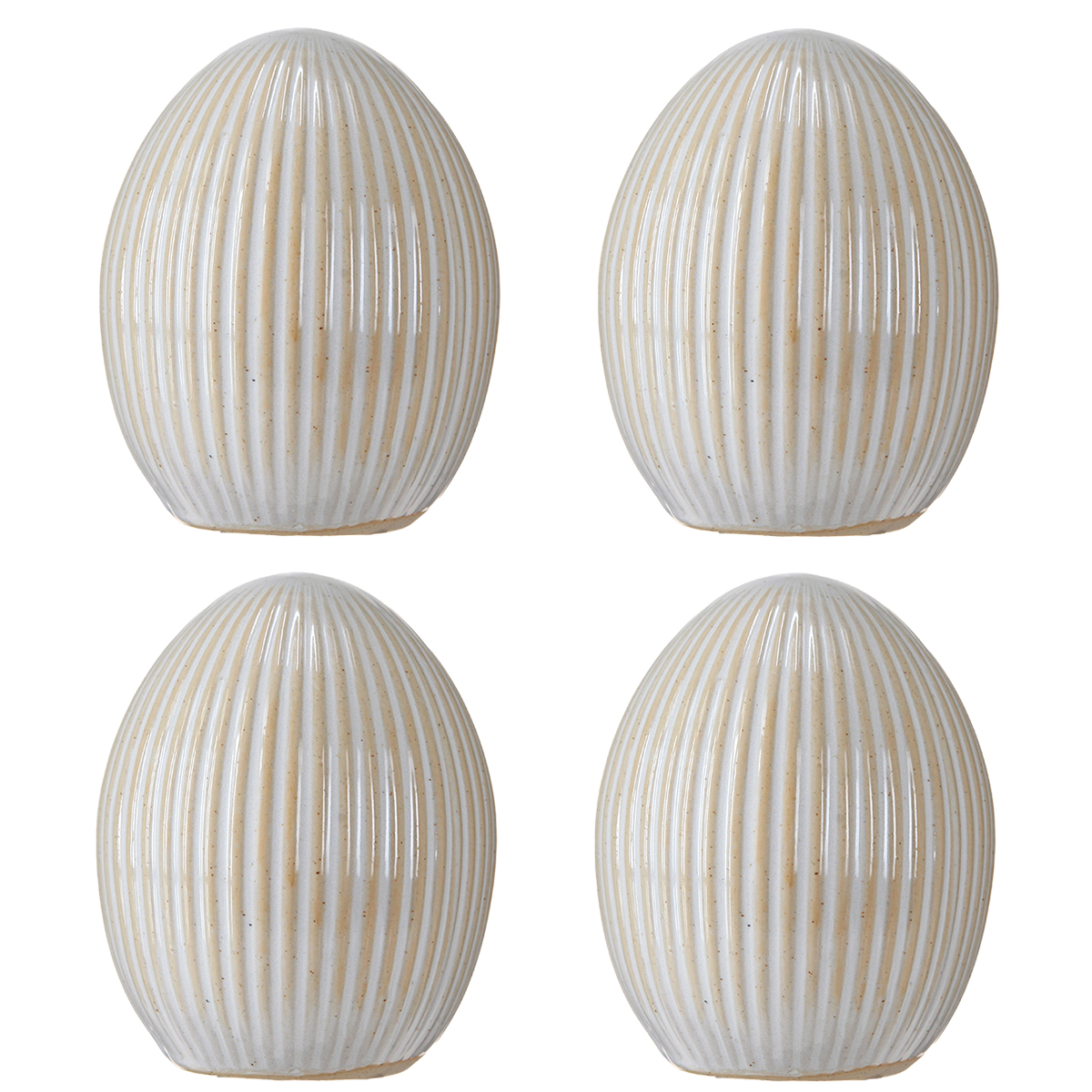 A finom barázdás szerkezetnek és a visszafogott kialakításnak köszönhetően a tojások egy minimalista dekoráció alapját képezhetik. Pasztell színű szövetekkel vagy világos bútorokkal kombinálva ezek a dekoratív tojások teljes potenciáljukat kibontakozhatják.