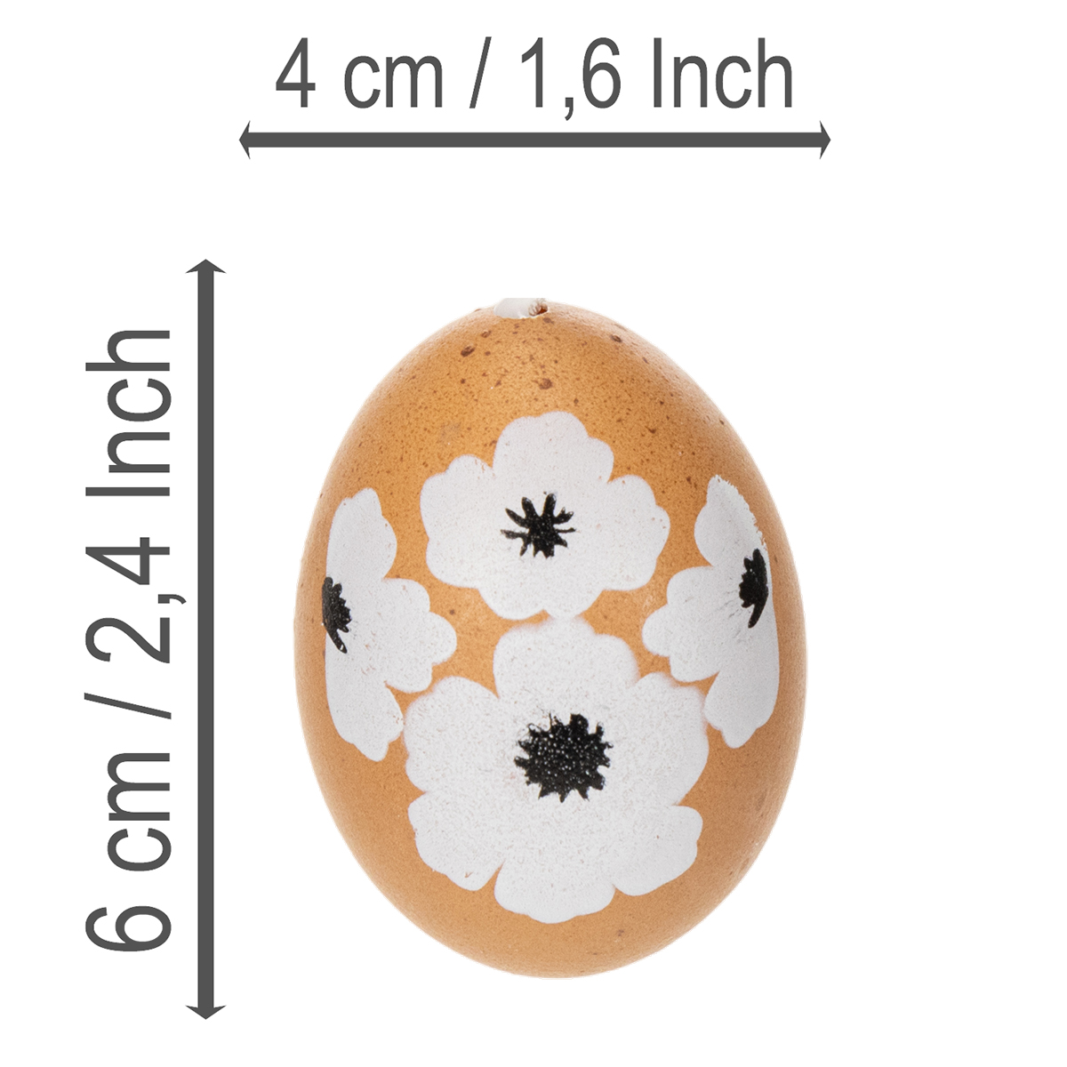 Ezek a díszes húsvéti tojások igazán különlegesek: valódi tyúktojásokból készültek, gondosan kifújták őket, és színes pecsétekkel díszítették őket. 6 cm-es méretükkel tökéletesek a húsvéti fádhoz vagy kirakatodhoz. Egyszerűen akaszd fel őket a mellékelt fehér szatén szalagokkal. A szeretettel megtervezett motívumok – három különböző virágminta – barátságos tavaszi hangulatot kölcsönöznek otthonodnak. Természetes, meleg színeik igazi szemet gyönyörködtetővé teszik ezeket a díszeket.