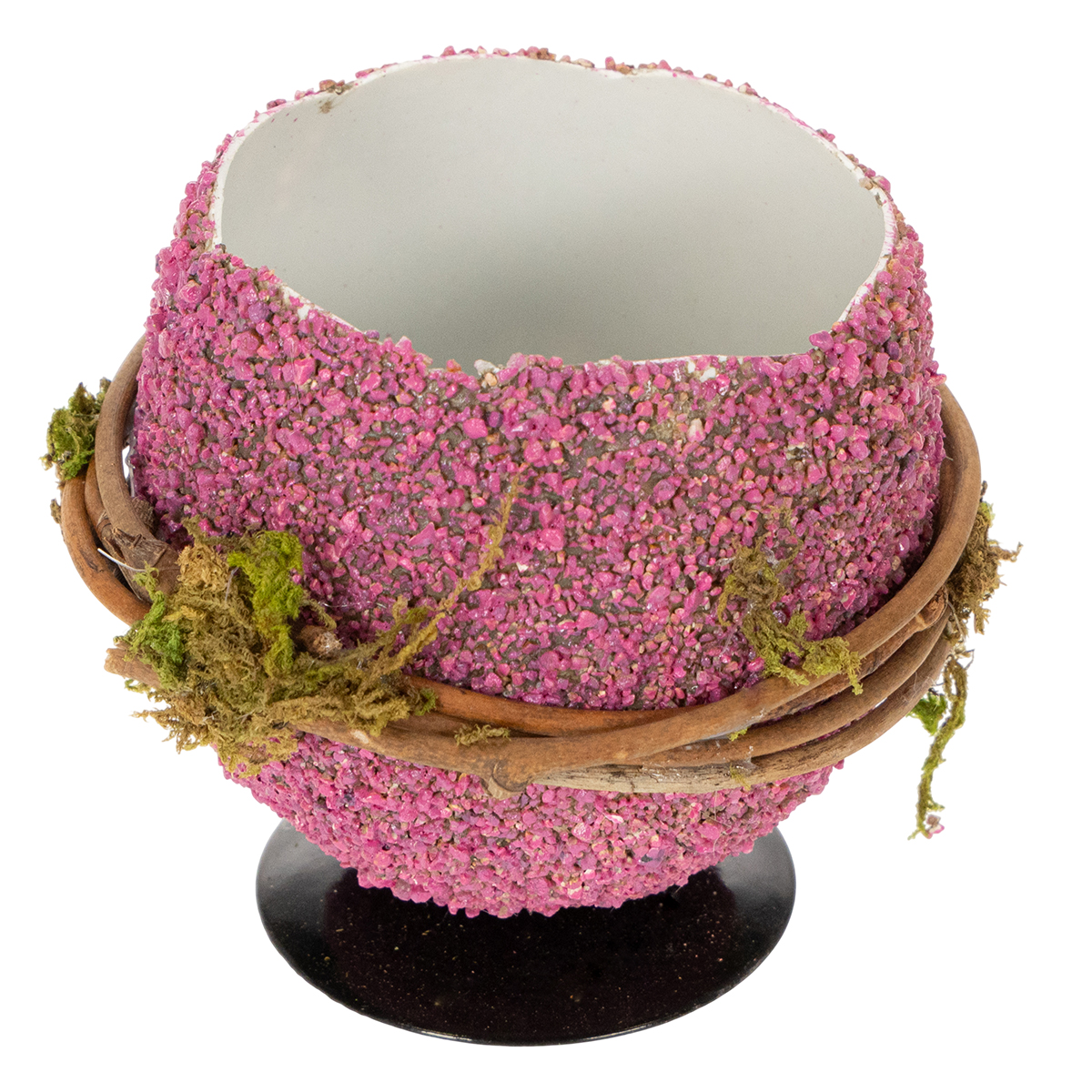 A lila, rózsaszín, zöld és más színek vidám színfoltot adnak a képnek. Az anyagok – műanyag, moha és fém – kombinációja igazi tekinteteket gyönyörködtetővé teszi a tojást. Az ágakból és mohából készült koszorú különösen természetes hatást kölcsönöz a dekorációnak. És ami a legjobb: ezt az ültethető húsvéti tojást személyre szabhatod egy kis pozsgás cseréppel vagy friss tavaszi virágokkal. A kreativitásodnak semmi sem szab határt!