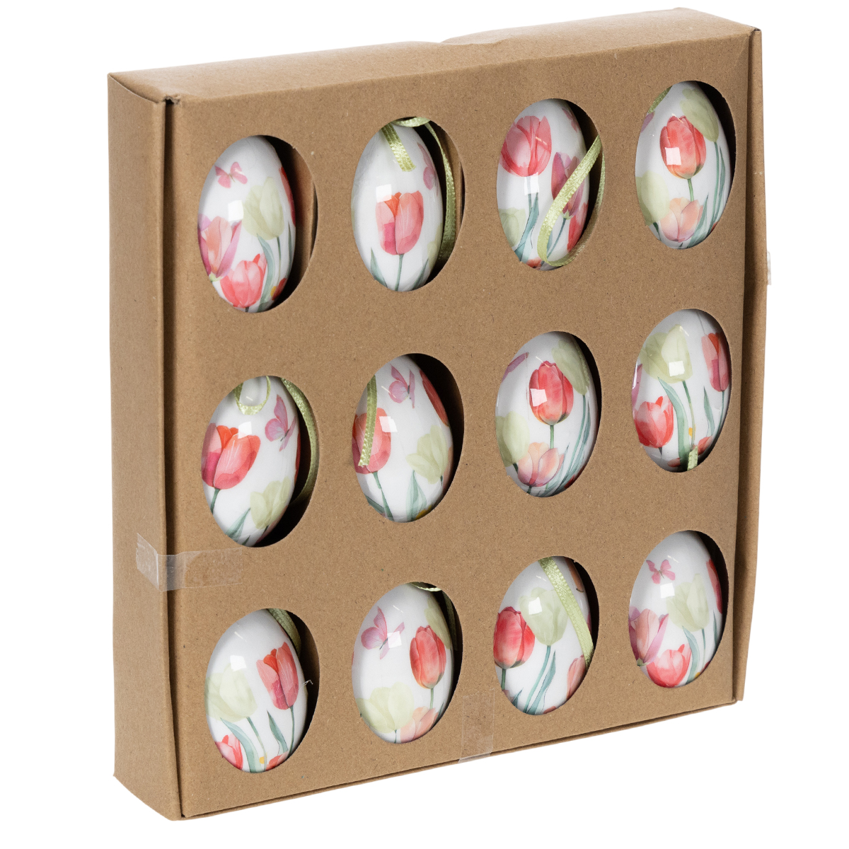 Termék neve: Húsvéti tojásdísz, tulipán motívum, szalaggal akasztáshoz és tavaszi dekorációhoz, 6 cm, 12 darab
