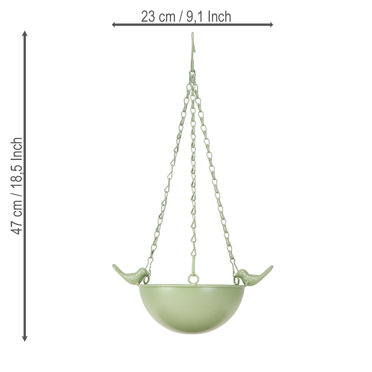 A masszív láncfelfüggesztés lehetővé teszi a biztonságos rögzítést ágakra, erkélykorlátra vagy a teraszon lévő kis kampókra. Az időjárásálló, robusztus fémszerkezet különösen praktikus, és évekig tartó örömet biztosít ennek a madáretetőnek. A két díszmadár játékos eleganciát kölcsönöz az etetőnek, így tökéletes kiegészítője a vidéki stílus vagy a természet ihlette dekoráció szerelmeseinek.