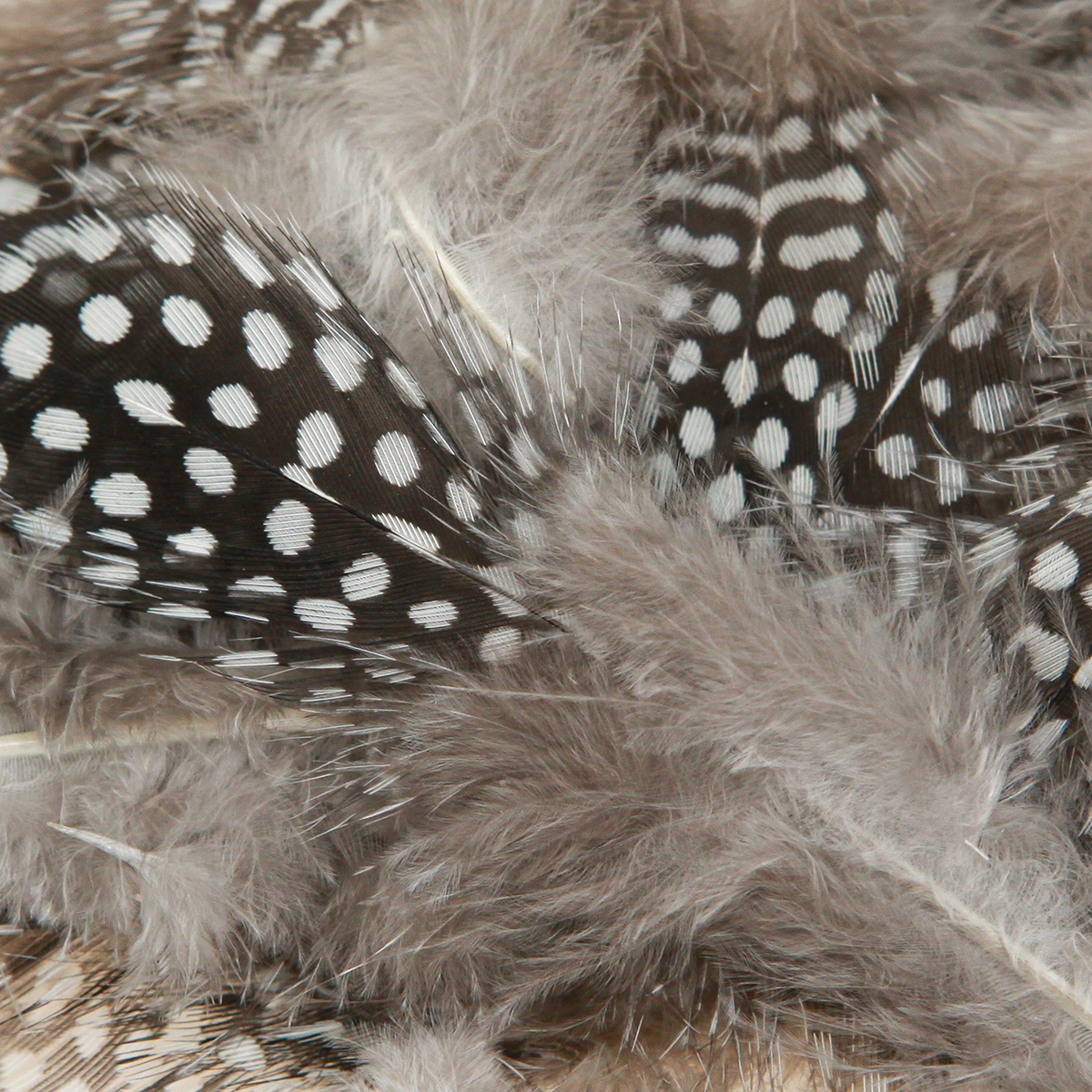 Igazi gyöngytyúk toll dekoratolla natúr 4-12cm 100 db