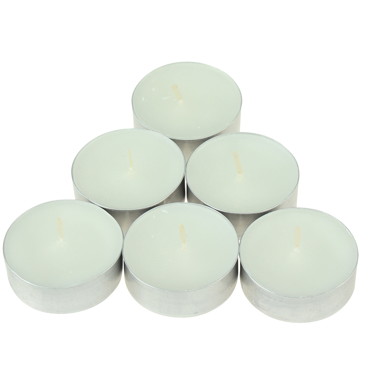 A füge-citrom illatot 12 db illatos gyertyát tartalmazó kiszerelésben kapod, fehér tealámpa formájában.