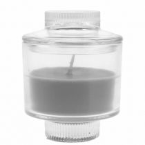 A szobai illatos gyertyák a tealámpás gyertyákra jellemző átmérőjűek és kis alumínium tálkában vannak.