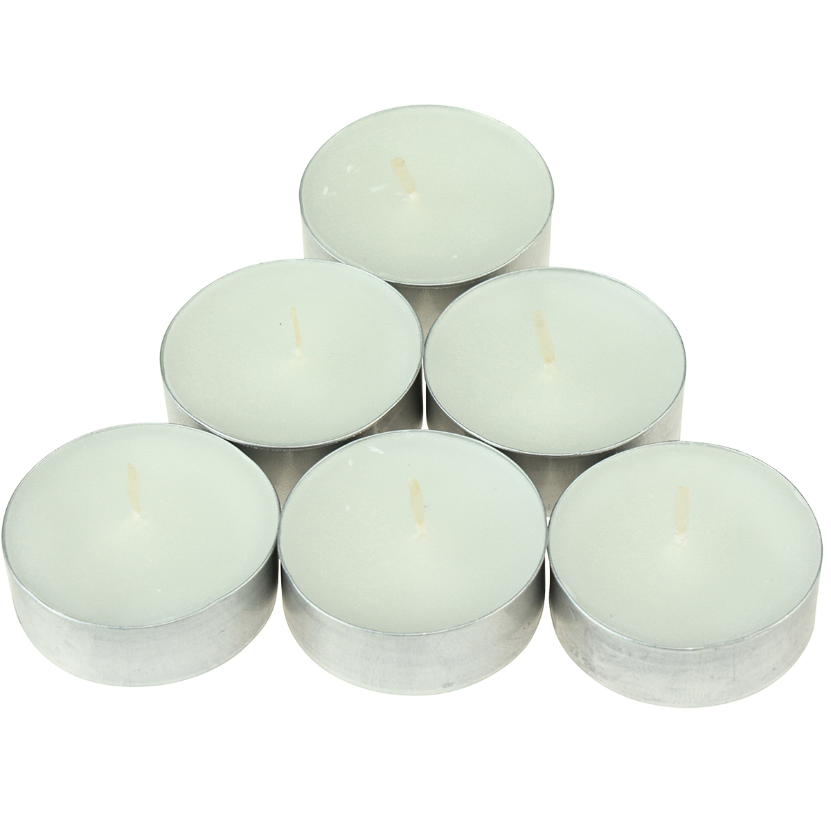 A fehér színű, shea vajjal és természetes olajokkal gazdagított illatos gyertyák úgy néznek ki, mint egy 3,6 centiméter átmérőjű tealámpa.