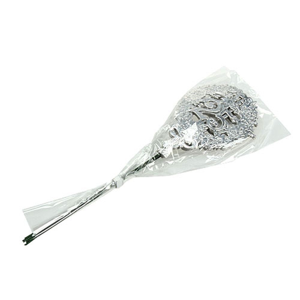 A „25” ezüst évfordulós számot 10 db-os kiszerelésben szállítjuk. A jubileumi díszdugók teljes hossza körülbelül 28 centiméter. A dombornyomott kartonból készült embléma, amelyen a „25” koszorúval és masnival együtt látható, nagyjából 8 x 12 centiméteres. Maga a szám körülbelül 3,3 x 3,5 centiméteres.
