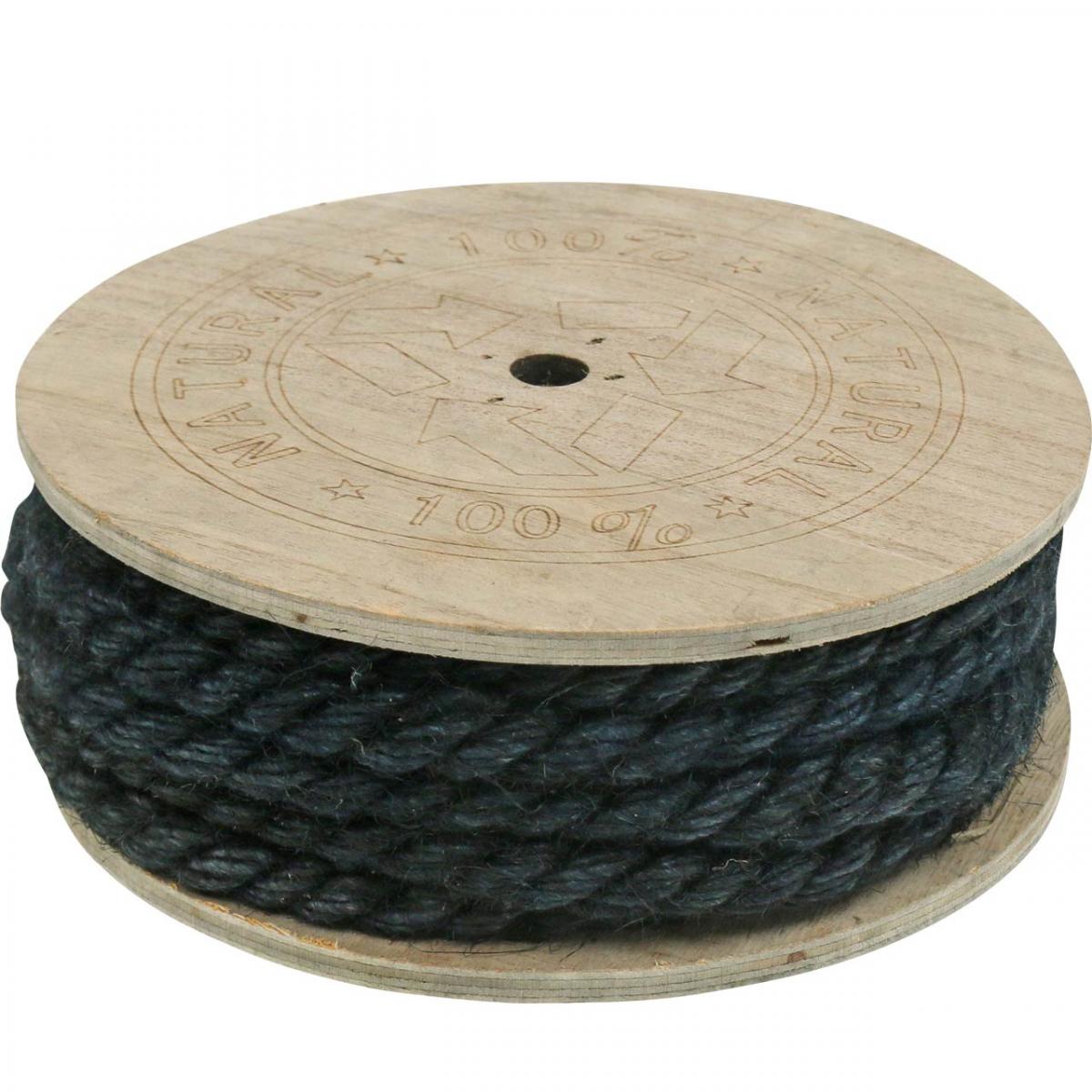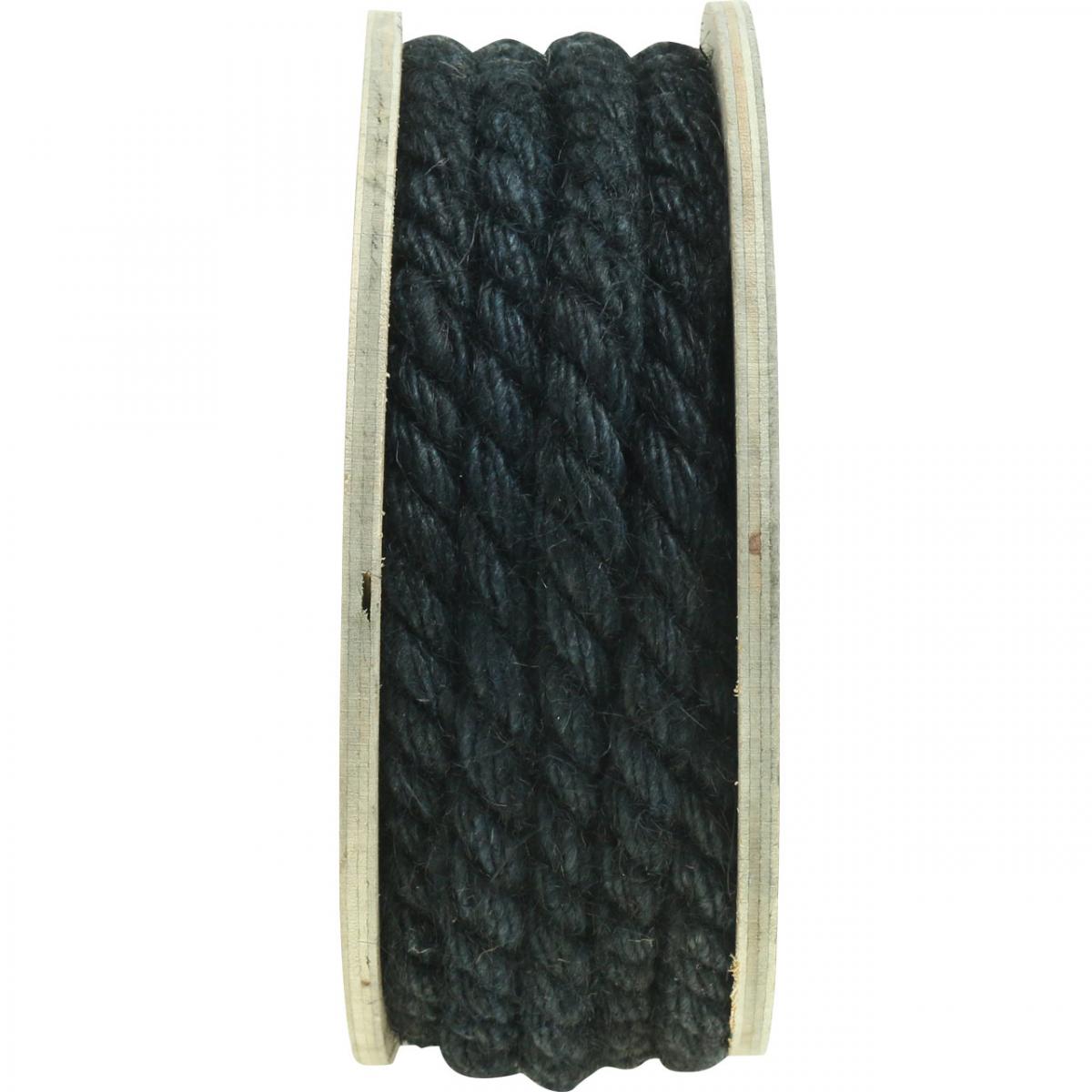 Juta zsinór fekete, díszzsinór, természetes jutaszál, dekorációs kötél Ø8mm 7m