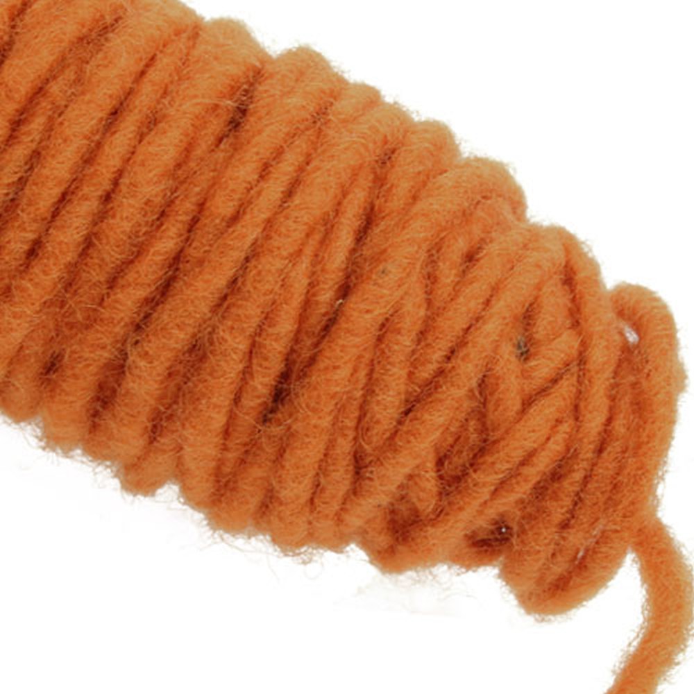 A narancssárga kanócszálat dobozban szállítjuk, hossza kb. 55 méter. Maga a cérna 20% jutából és 80% juhgyapjúból áll.