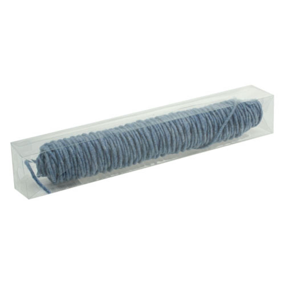A kék kanócszálat dobozban szállítjuk, körülbelül 55 méter hosszú. A zsinór 20% jutából és 80% juhgyapjúból áll.