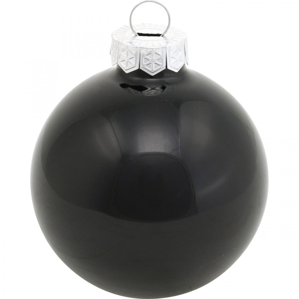 Karácsonyfa golyók, fa medálok, üveggolyók fekete H6,5cm Ø6cm valódi üveg 24 db