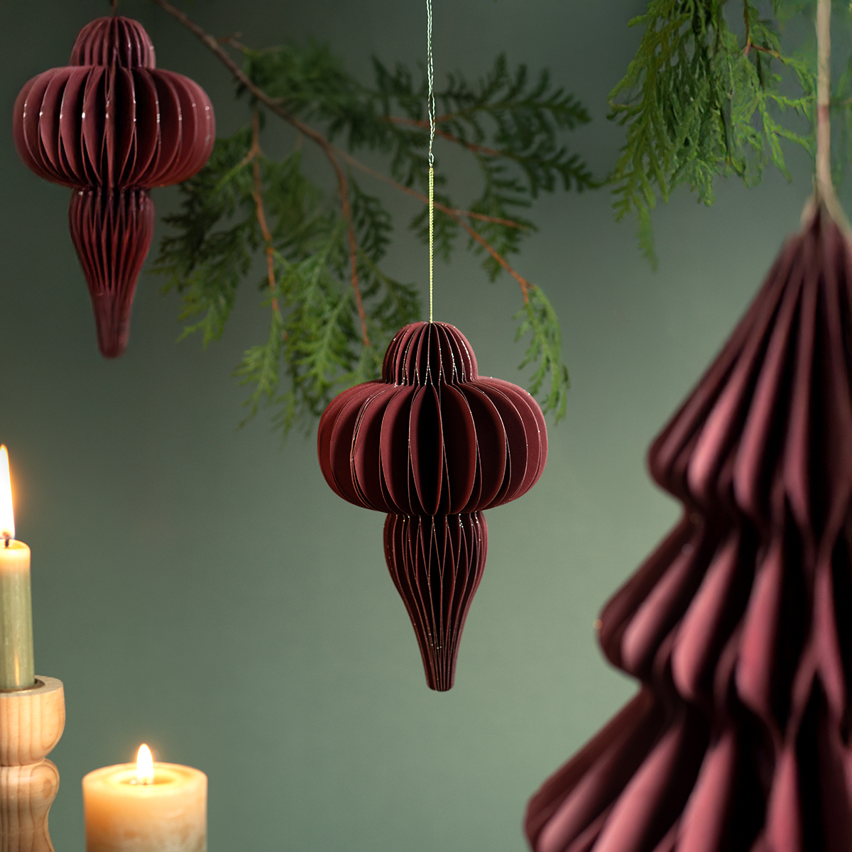 Karácsonyfadíszek, bordói papírból, 20 cm, 2 darab, elegáns, összecsukható