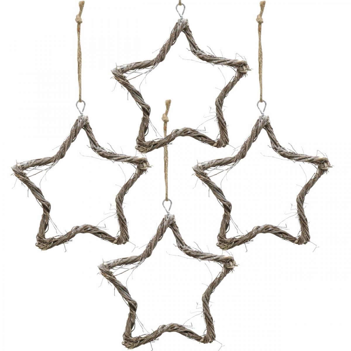 Karácsonyi dekoráció csillag bodza csillagok akasztani fehér mosott 20cm 4db