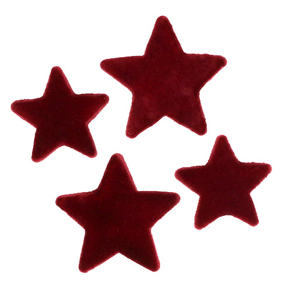 Karácsonyi dekoráció csillag bordeaux pelyhes asztali dekoráció 4-5cm 40 db