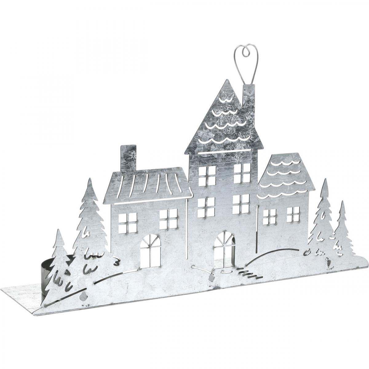 Karácsonyi dekorációs házak, fém teamécses tartó L20cm