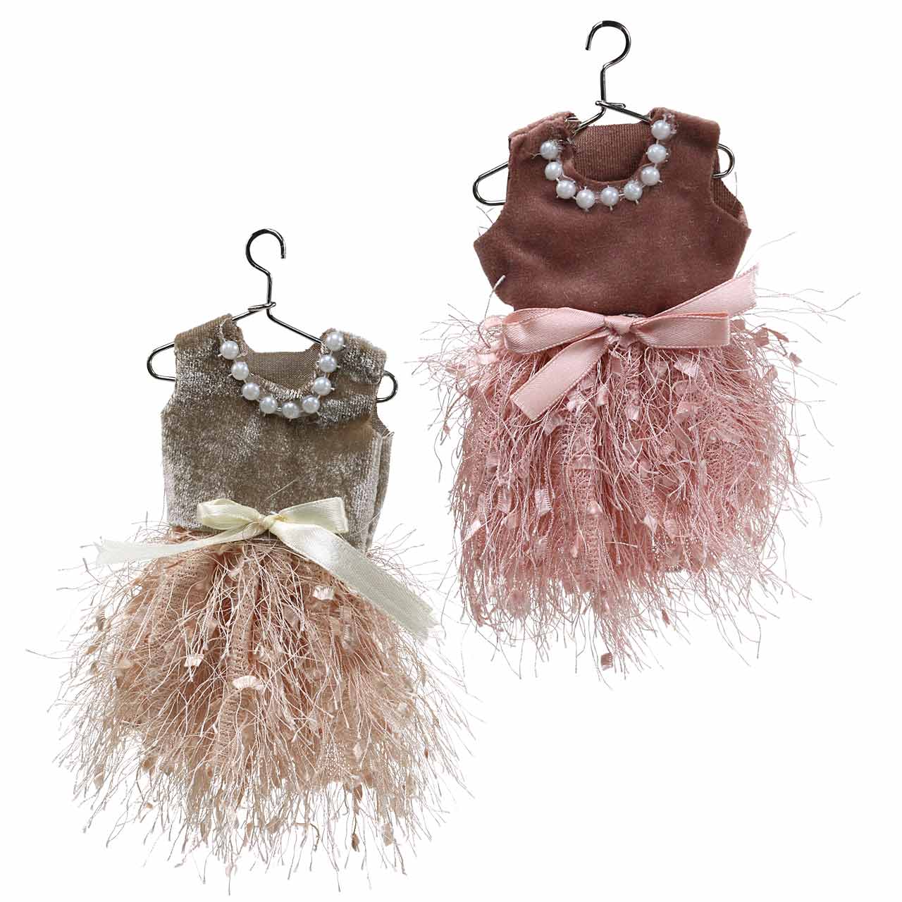Karácsonyi dekorációs manó ruha akasztón rózsaszín, barna/krém 16cm 4 db vegyes