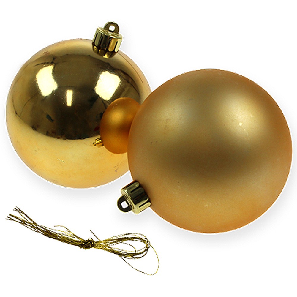 Az arany karácsonyi labdát dobozban, összesen 4 darabban szállítjuk, a lyukkal együtt körülbelül 11 centiméter hosszúak. Maguk a golyók átmérője körülbelül 10 centiméter.