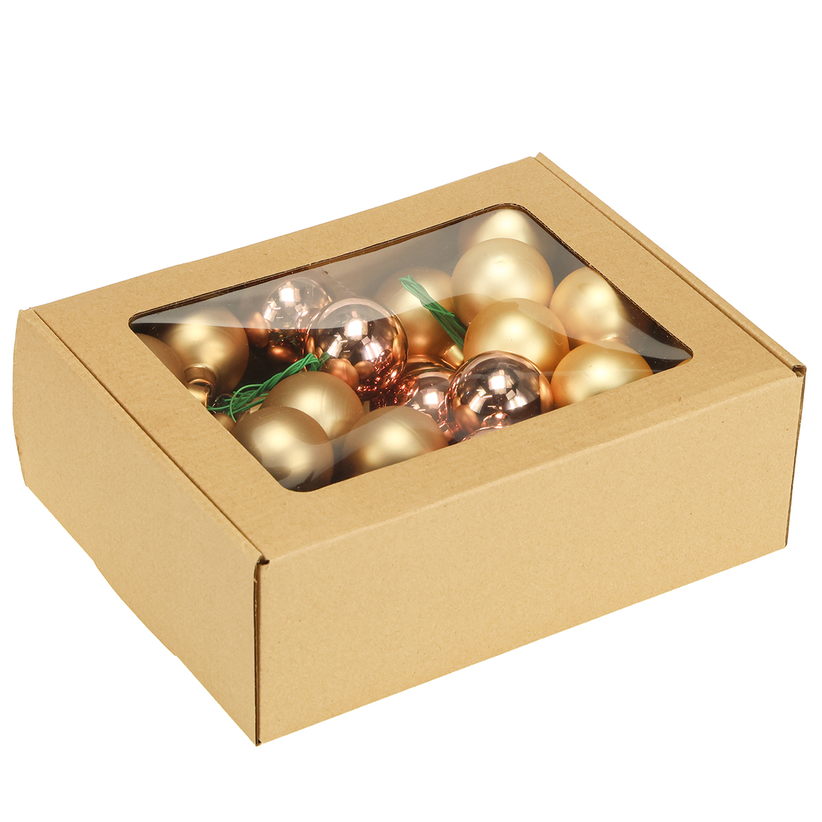 Karácsonyi gömbdísz rozéarany üveg tükrös bogyók Ø40mm 32 db