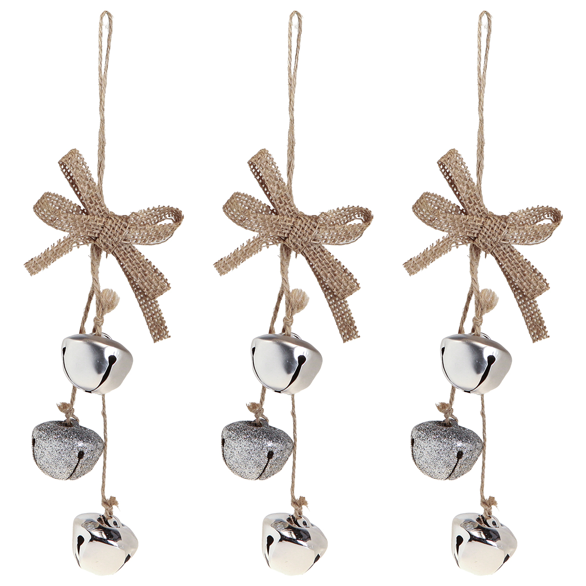 Az ezüst karácsonyi harangok hármasa tökéletes kiegészítője a karácsonyfadísznek. A fényes, matt és csillogó felületek kombinációja elegáns hangulatot kölcsönöz minden helyiségnek. A juta akasztóknak és masniknak köszönhetően ezek a karácsonyi harangok gyorsan és egyszerűen akaszthatók a fára.