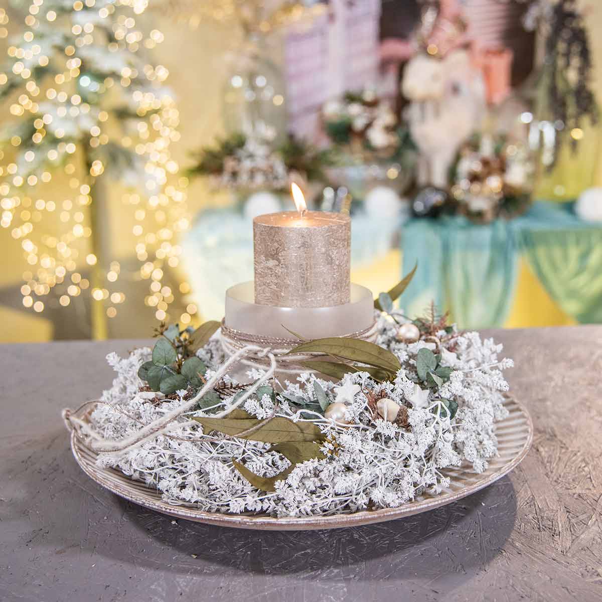Rögzítse a karácsonyi koszorút az ajtóra, vagy használja a szárított virágokból készült koszorút asztali dekorációként. A fehér vászonkoszorú mindenesetre ünnepélyesebbé varázsolja otthonát, irodáját vagy kirakatát.
