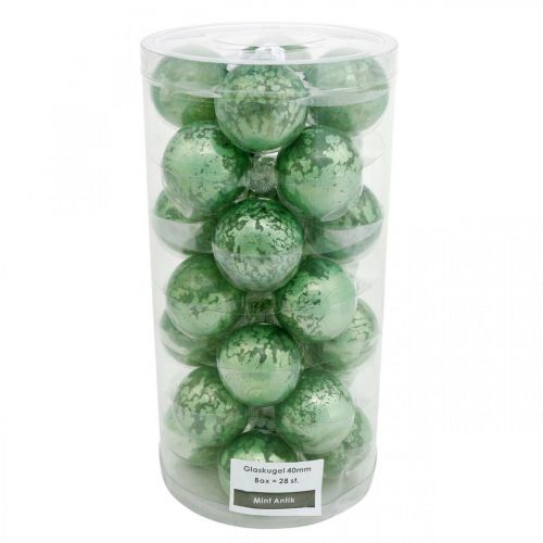Karácsonyi labda, fadísz, karácsonyfa golyó zöld márvány H4,5cm Ø4cm valódi üveg 24 db